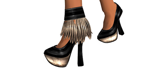 NEW La Sauvage heel's by Courtisane a division of LeeZu! I totally love these high heel platform's they are soooooo chic! I especially love playful sexy fringe around the ankle, you can wear it or without as shown here.